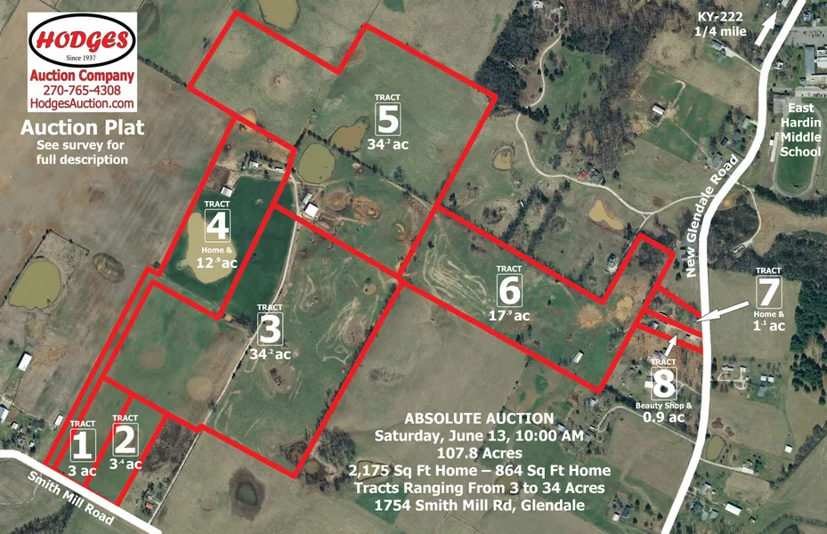 DIRECTIONS: From the intersection of KY-222 and KY-1136 (Beech St/New Glendale Rd) travel south about 1 mile to Smith-Mill Rd and turn right. The auction site will be a short distance on the right.