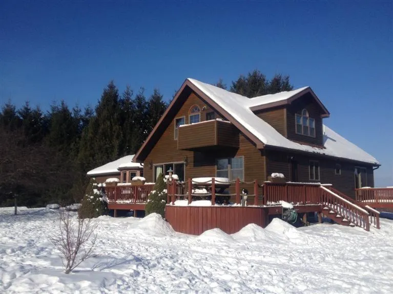107 OPEN & WOODED ACRES plus A STUNNING CEDAR HOME in a private, beautiful location! Quality is extraordinary. Highlights: living room with solid cherry paneling / floors, gas fireplace, built-in bookshelves & 5-in-1 surround sound (with 2nd zone in family room & pool house). Off the living room is a home office & French doors leading to family room with cathedral ceiling, cherry floors, Vermont Castings woodstove, a full bathroom, and sliding door to private deck. The kitchen and dining room area has solid maple cabinets, crown molding, ceramic tile floors. The 1st floor master suite has an en suite (oversized shower, solid cherry vanity with quartz sink), sliding door to private deck, and walk-in closet. Upstairs are 2 generous sized bedrooms & a bath. Large rec room, woodworking shop, & storage room in basement. Tiled dog shower in the mudroom just off the heated garage. Outside - view of Mt. Markham with 18x36 pool and 12x24 pool house with half bath & a screened room. Call today!