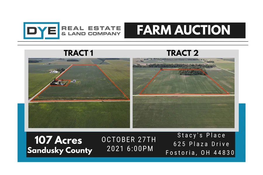 LAND AUCTION! 107 +/- ACRES SANDUSKY COUNTY OFFERED IN 2 TRACTS (INDIVIDUALLY OR AS A WHOLE)