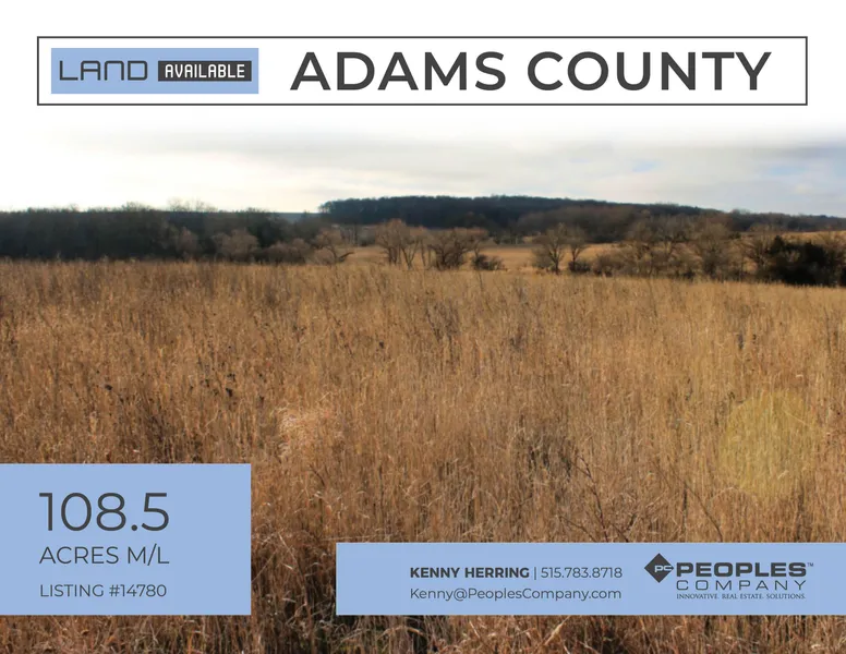 Peoples Company is pleased to offer an exceptional combination farm located in Adams County, Iowa. This 108.5 acre m/l recreational playground offers an array of features including CRP acres, Hardwood timber, small pond, nice pole building and a modest home. There is also 10,000 bushel of bin storage located on the farm.