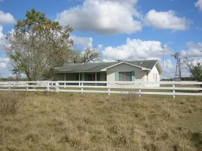 1615 sq. ft. home w/white brick FP, large oaks, native grasses, large utility room, covered front & back porches, 2-car attached garage, native grasses, barn, 2 water wells, 1 windmill, minerals negotiable