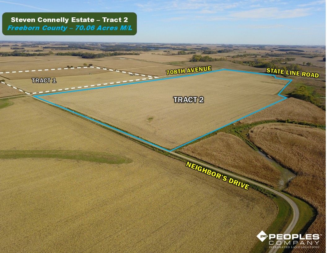 Freeborn County, Minnesota Farmland Auction Mark your calendars for Tuesday, December 2nd, 2025, at 1:00 PM! Peoples Company is pleased to represent the Steven L Connelly Estate and the Connelly Family with the sale of Stevens farm located just east of Emmons, Minnesota. The portfolio consists of 109.6 acres m/l that will be offered as two individual tracts via public auction utilizing the Buyers Choice auction method. These nearly 100% tillable tracts include 107.88 m/l cropland acres and an average CPI soil rating of 84.5 with primary soil types of highly productive Hamel loam, Minnetonka silty clay loam, and Lester Loam. These tracts are located in Section 34 of Nunda Township in Freeborn County, Minnesota.