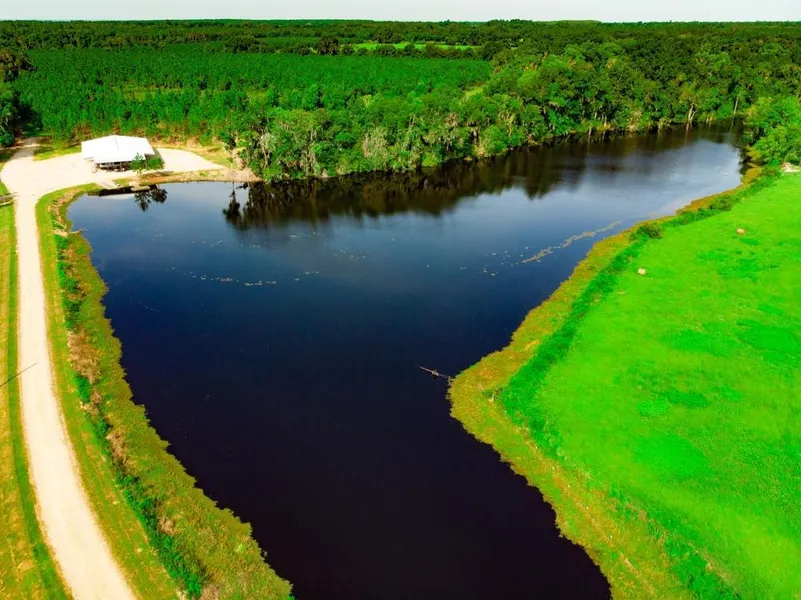109 Acre homesite with stocked lake, timber, pasture, and established dove field! This tract is zoned as low as 2.5-acre lots and is all upland except the lake, or is a ready-to-go turn key recreational property. It comes complete with power and a well, and a 120? x 70? metal barn with rock floor. All this just minutes from Valdosta, GA. The property is 109 acres +/- and is made up of: - a 10-acre lake stocked with bass and speckled perch - a 3-acre dove field - 76 acres of planted slash pine - 3 acre field - 10 acres of natural hardwood and open areas, including the metal barn area The beautiful lake is 12? deep and stocked with bass, perch and other fish, and stays full year-round. It is ringed by natural hardwood and hay pasture and has a new boat launch and wooden dock. The dove field/food plot has a fake power line running through it and a large condo stand for deer hunting. Hunting...