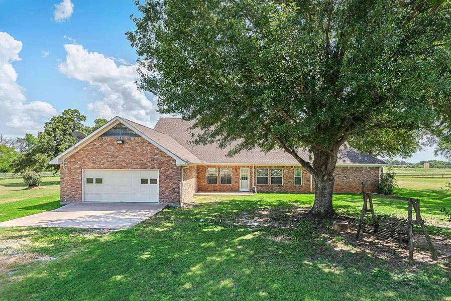 The Smith Ranch is about 8 mi west of I-45 on Hwy 179 with about 2760' of highway frontage. It has county maintained paved roads on the east and north sides, amounting to about 4738 of frontage. There are two entrances, one from Hwy 179, the other from FCR 650, each with picturesque drives to the homes.