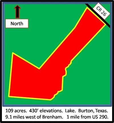 The Land Development Division and the Land & Ranch Division of Coldwell Banker Commercial Properties Unlimited (CBC Brenham) are pleased to present this outstanding offering of 109 acres in the Burton area just 1 mile from US 290 (the “Ehrig Hills Estates of Burton”). Priced at less than $700,000 for over 100 acres in Burton with outstanding views, 100+ year old trees and a beautiful lake, it may be the most compelling under $1,000,000 land, ranch and/or investment opportunities in the six county market.