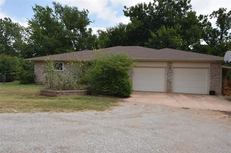 Insurance claim approved - this home will be receiving a complete new roof system as well as guttering. Home includes two older metal shops/outbuildings and a home of 2409 sf with a 625 sf garage and a basement of 10' X 20' under the garage area with a concrete stairway off of the utility room and its' third bath. The home offers three porches 9'X15' and 11'X17' and 7'X11'. This property is serviced with its' own well and septic system. Property is commercially zoned and so could become your personal business location as well. Buyer will receive said pin survey as well as the City of Guthrie lot split approval. The home reveals two living areas and two dining areas and a large utility room with a full bath for cleaning from a hard day's work. The home may be older, but is of solid construction and ready for your occupancy.