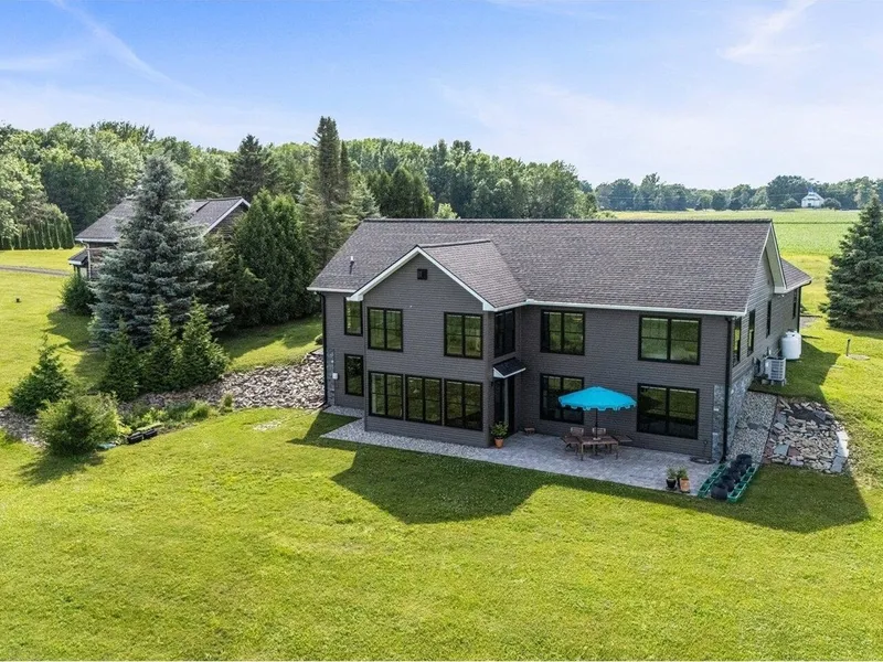 Welcome to Bubble's Meadow, a stunning 11 acre property in Grand Isle offering picturesque views and modern comforts. Perfect for those seeking tranquility and a touch of nature, this home also provides the conveniences of contemporary living. Spacious and airy, this home maximizes comfort and natural light. Large windows offer breathtaking views of the private neighborhood and Lake Champlain. The kitchen features modern appliances, ample counter space, and a vibrant backsplash. The interiors boast a stylish, modern aesthetic, complemented by dark walls and cozy lighting. Numerous upgrades include new roofing, windows, and siding. Set on a generous plot of land, the property boasts expansive lawns and mature trees, ideal for outdoor activities and relaxation. The unfinished walkout lower level is a blank canvas ready for your transformation. This property also includes a log cabin built with local wood from South Hero. This accessory dwelling unit (ADU), could be ideal for rental income or accommodating guests. The scenic beauty of the landscape changes with the seasons, offering colorful fall displays and serene winter views. The well-maintained grounds offer opportunities for gardening, recreation, and gatherings. This property combines the peace and beauty of country living with the style and convenience of a modern home. It's a lifestyle choice for those who appreciate the finer things in life and the beauty of nature.