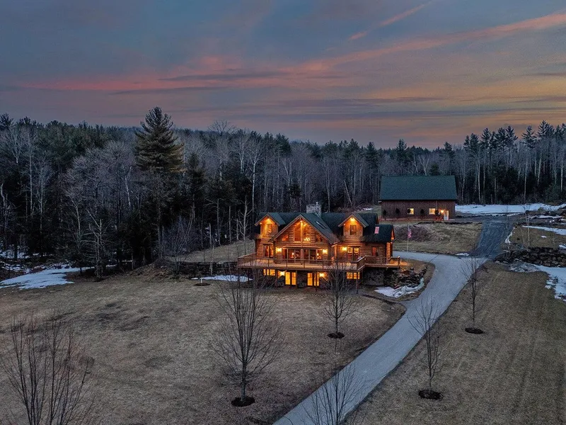 Looking for your Vermont dream home? This custom-built Contemporary Log Home nestled on 11 wooded and open acres with pond and fountain offers everything you want and need. Inside you\'ll find a sunny, open floor plan with plenty of room for everyone. The chef of the home will be delighted with the gourmet kitchen offering stainless professional grade appliances, granite counters, and large island with seating. Enjoy the great room with a soaring vaulted ceiling, an abundance of windows, and gas fireplace with gorgeous stone chimney. The primary bedroom suite is conveniently located on the main level and offers a walk-in closet, private bath with tile shower, and access to the front wrap-around deck. Speaking of the deck, you can access it from the great Room and dining room for seamless entertaining from inside to out. A 3/4 bath with laundry rounds out this level. Upstairs you\'ll find...