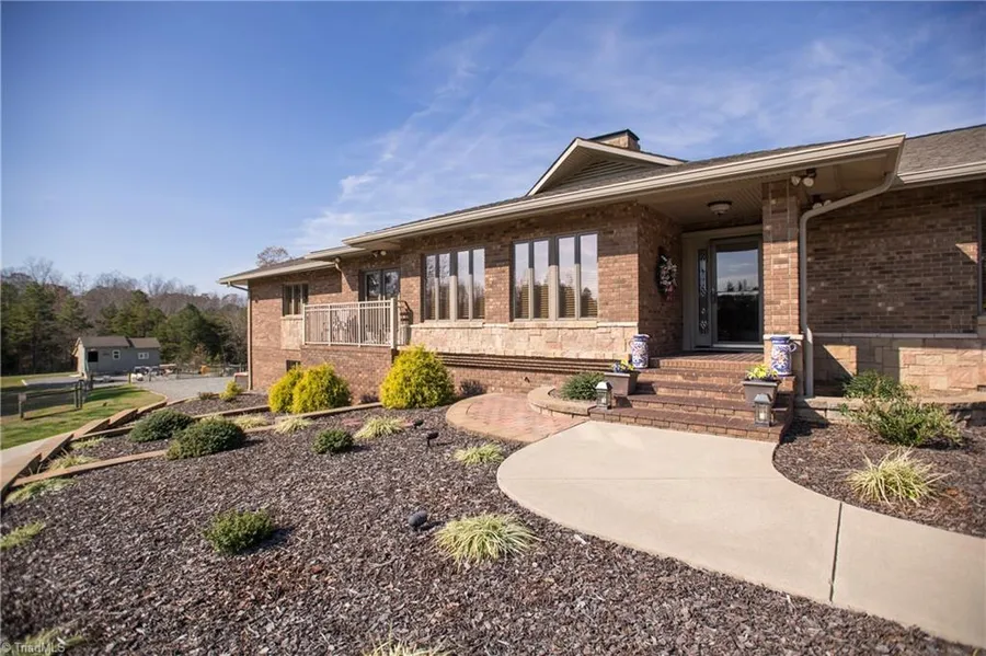 This extremely well maintained large brick ranch sits on over 11 acres with wooded and fenced areas along with a goat barn that is perfect for four legged family members! On the main level there are three very spacious bedrooms each with its own private bathroom, a large eat-in kitchen, and dining room. The master suite includes an office, sitting room, and deck. In the beautifully finished basement, there are two more bedrooms (one currently used as fitness room), kitchen, cozy den with fireplace, and large recreation room currently used as a second office. There is a two car garage on EACH level. The basement garage also houses an amazing workshop area. Two of the bathrooms are handicap accessible, interior walls are insulated for soundproofing, and the house has been pre-wired for a generator. ASSESSED VALUE AS OF 02/01/21 is $942,310.