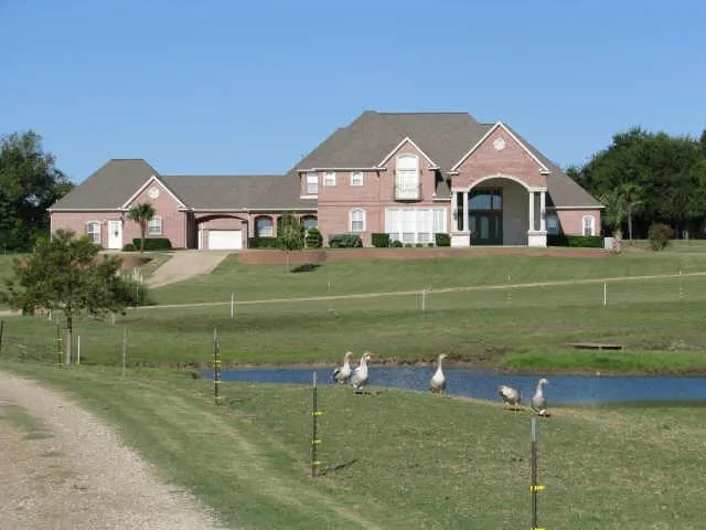BEAUTIFUL CUSTOM BUILT HOME ON 11 + ACRES. SITS HIGH ON HILL OVERLOOKING POND THAT HOLDS WATER YEAR ROUND. LOTS OF FISHING & DUCKS. PLANTATION SHUTTERS, INTERCOM, CROWN MOLDING ARE A FEW THINGS THAT ADORN THIS MAGNIFICENT PROPERTY. TWO MASTER SUITES DOWN & TWO BEDROOMS UP. LOTS OF TREES, CREEK & PRIVATE POND FOR YOUR ENJOYMENT. CLOSE TO DFW AREA.GUEST QUARTERS WITH SEPARATE ENTRANCE. OFFERS 2 BEDROOMS AND 2 FULL BATHS. FULL KITCHEN & W-D AREA.