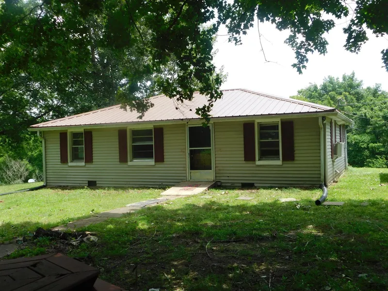 This house has been used as a rental for the past few years and is in need of some repair. It has 2 bedrooms, 1 bath, kitchen, living room and an additional room for laundry and/or dining area. Laminate flooring throughout. Detached garage/storage building, another metal storage building that needs some repair. All this sitting on a beautiful 11 acres close to Duck River!