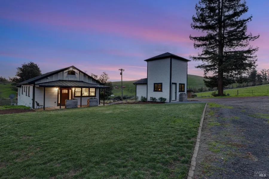 Welcome to 1263 Rose Ave! This stunning one-of-a-kind homestead includes a newly remodeled main home, water tower, large barn/covered parking, and several outbuildings. The property offers serene country living while being conveniently located just a short drive to downtown Penngrove, Cotati, Petaluma & Hwy 101. The main home has been beautifully updated with newer finishes throughout including a custom kitchen, high end appliances, tankless water heater, heater/AC, windows, 200amp panel, plumbing & roof. The home features two generously sized guest bedrooms & designer finishes in the guest bathroom. The primary bedroom includes a large walk-in closet & spa-like bathroom which boasts a walk-in shower for two, an oversized soaking tub & double vanity. A large laundry room is located off the kitchen. The wrap around deck offers stunning valley views with sliding glass doors off both the primary bedroom & living room. Bring your animals! There is ample room for cattle & horses. The main barn includes a newer 100amp panel, workshop, storage, covered parking & a finished office area. RV hook-ups are present! The water tower has potential to be used as a possible ADU, buyer verify w/ county. The well produces 19.6 gpm! Do not let this rare opportunity to own over 11 acres pass you by!