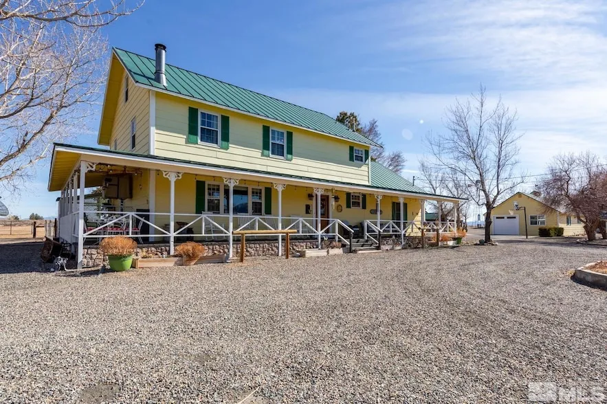 Do you want it all? You can have it here on this beautiful Horse/Ranch property in the heart of Smith Valley NV. 11.26 acres with Water Rights 12.8 ACFT sub surface AG well. From the wrap around porch & stunning Barn to fully fenced pastures and a small orchard this property is a true gem. It even has a guest house w/garage & RV Hook up plus large metal hay & equipment storage. Multiple out buildings, tack shed, gazebo, and windmill used to pump water from secondary domestic well. +Detached garage&car port PRICE REDUCED BELOW APPRAISED VALUE Main Home has 6 Bedrooms 4 Bathrooms Guest Home has attached garage, 1 Bedroom, 1 Bathroom, Living Room and Kitchen. ( total = 7 bedrooms 5 Bathrooms) Upstairs has bonus/family room with fireplace, wet bar and balcony. Pastures have sprinklers and are fully fenced. Beautiful property for possibly hosting wedding venues and events. Goats & Chickens are negotiable. Some personal property will be included in purchase as they are items that have been passed down from previous owners with the home. Buyers and buyers agents to do their own due diligence. All information in this listing is deemed reliable but not guaranteed. Please copy Jenny Villalobos on all e mails and offers