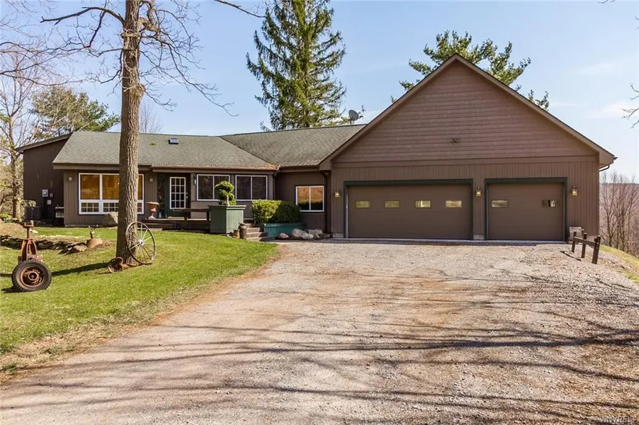 This peaceful 3 bed 2 bath contemporary split level boasts spectacular views from every room to enjoy the 11+ acres & pond that brings wildlife to your back door. The open floor plan is an entertainer's dream, with a corner gas fireplace, beautiful mantle, vaulted ceilings, recessed & spotlights to accent artwork & collectibles, & sliding doors to a large deck to relax after a hard day's work. The fully applianced kitchen has a breakfast bar, walk-in pantry & French doors leading to the enclosed front porch. The large master has 2 closets: 1 walk-in w/clothes shoot, full bath, separate makeup vanity, sliding doors to private deck to enjoy a favorite book. The home also offers 3 separate attics - basement with walkout, Amish built 12 X 32 shed. Updates include dishwasher, HWT 20, heat pump furnace 21, and forced-air furnace in '17. The 16 X 26 finished room above the garage provides extra space for all your living needs. The attached oversized 6 car garage offers plenty of room, making this a car enthusiasts dream. A full 12-month warranty is provided for your peace of mind. This versatile floor plan offers so many options, so bring your things, your imagination & move right in.