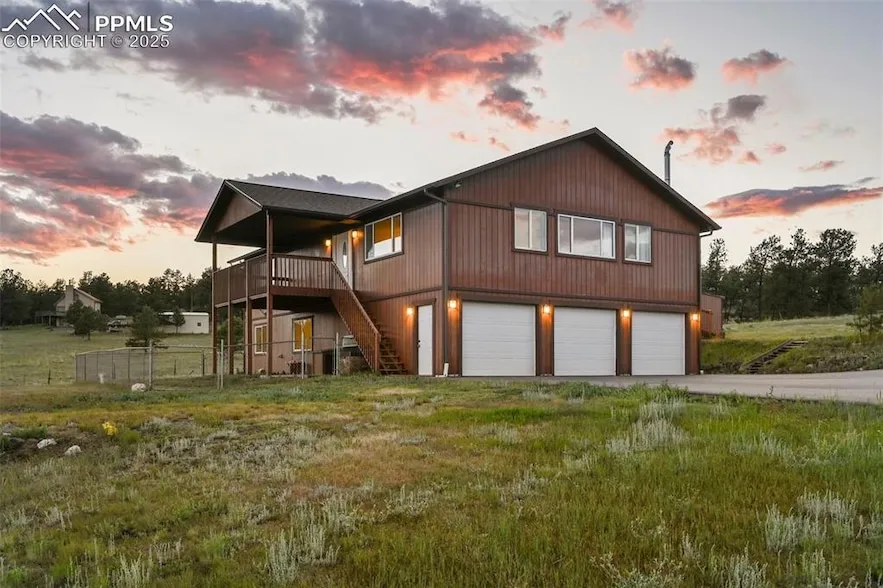 As you approach this picturesque mountain retreat, set on over 11 acres, you ll immediately be struck by mountain views and dramatic rock formations. The large, covered front porch invites you to sit and take in the peaceful surroundings. Stepping inside, you ll be greeted by a wall of windows in the living room, where natural light floods the space, perfectly framing the Pikes Peak view. The cozy warmth of a pellet stove creates an inviting atmosphere. As you move through the home, you ll find the oversized master bedroom a true retreat with an ensuite bathroom featuring a freestanding shower and a luxurious soaking tub, where you can relax and recharge. The large kitchen, adorned with beautiful hardwood floors, provides ample space for both cooking and entertaining, with plenty of room to gather and create lasting memories. Downstairs, you'll find a secondary living space. With it's own separate access, full bathroom, and additional guest bedrooms, family and friends can stay with peace and privacy. Outside, you ll discover ramp access to the upper level, making it easily accessible. The paved driveway, fabulous for snow removal, leads to a spacious 3-car attached garage, along with an additional 1-car detached garage, providing plenty of space for vehicles and storage. Two sheds offer even more room for tools, hobbies, or outdoor gear, and the fenced yard includes a dedicated dog run, perfect for your furry friends to roam freely. Classic cedar siding and a brand new roof make this home attractive and reliable. Coveted southern exposure and low utility bills! With sensible covenants, this property offers the freedom to truly make it your own. Just a short drive from Florissant Fossil Beds National Monument, it blends the peacefulness of mountain living with the convenience of nearby attractions. This isn t just a home; it s a lifestyle waiting to be embraced. Take a tour today and experience the mountain views and tranquility that could soon be yours!
