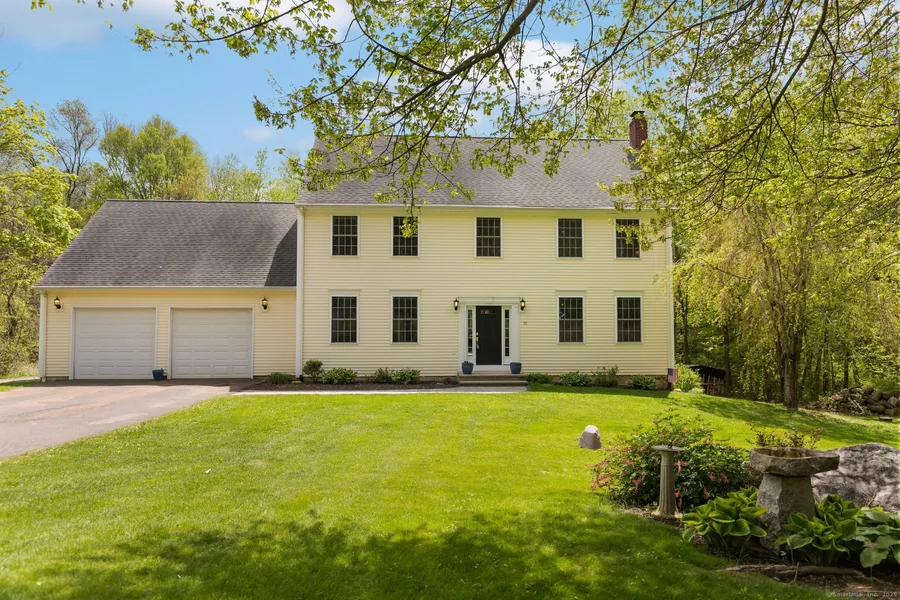 Beautifully maintained, single owner, 2,700+ sqft Colonial on over 11 acres nestled in a quiet corner of Ellington. The 1st floor features an open-concept kitchen with stainless steel appliances, custom crafted cabinetry, and pantry, flowing into a bright eat-in area with deck access overlooking the level and private backyard. Adjacent is the living room with cozy gas fireplace controlled by a wall switch - doesn't get easier than that! The living room opens to large study with beautiful French doors. If you like to host, you'll love the spacious formal dining room that comfortably seats 8! Another feature to note is a convenient mudroom that connects the garage to the kitchen and has additional backyard access. A half bath completes the main level. Upstairs, the primary suite includes a walk-in closet and updated en-suite bath with walk-in shower. There are two additional bedrooms with and an oversized fourth bedroom-perfect as a bonus room to fit any of your needs (new carpets!). 2nd floor laundry room makes chore day a breeze! Lastly, an updated full bath w/ tub shower. Additional features include walk-out basement, whole-house generator ready, 12x20 shed (2012), wood boiler hookup (boiler included), 200-amp service with space to expand, 3-zone heating, and central air! Use your imagination with how you'd use your 11+ acres of land! Whether you're looking to hike w/ your dog or somewhere to park a boat so you can enjoy Crystal Lake 5 minutes away, the options are endless