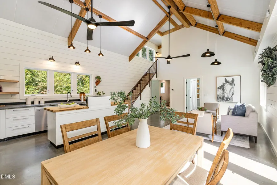 ***ATTENTION BUYERS*** This ''Dog-Trot'' style home is actually comprised of 1935 sft of beautfully finished above grade living area intentionally designed with two separate and equal footprint wings but separated by a 10' wide unconditionned covered breezeway, enclosed on one side but open to a beautiful shared covered patio space on the other. MLS/ANSI rules require listing second wing as ADU but it is part of the same structure! With its architectural origins steeped in Southern Appalachian and Coastal Carolina history, this artfully adapted and meticulously crafted, fully permitted, pre-listing inspected ''Dog-Trot'' home is a sight to behold! Designed and built to be both visually stunning, low maintenance and energy efficient, this home delights the senses in every way possible. Equestrians - this beautiful 11.33 acre lot allows horses (in fact there are already some in the neighborhood!), and for you, and trail enthusiasts and nature lovers, this lot DIRECTLY CONNECTS to Cedar Rock Park with a path cut to the Bridle Trail and 6 miles of equestrian trails! This open-concept home impresses with a vaulted breezeway, shared patio, and views to beautiful perennial gardens and hardwoods. Enjoy polished poured concrete floors with radiant heating, an industrial-gradeTagaki tankless water heater, whole-home water purifier (2023), newer HVACs (2020/2023) and modern/sleek ceiling fans for year-round comfort. Abundant natural light pours through five dormer windows & three glass paned French doors leading to the garden. The durable, low-maintenance exterior features factory-painted insulated metal panel (IMP)roofing, corrugated metal siding, PVC trim and vinyl windows. The chef's kitchen boasts soft-close Shaker cabinets, sleek stainless pulls, a polished concrete countertop, Butcher Block center island with 5-burner gas range and dark stainless fridge. The left wing offers (1099 sft) two bedrooms - 1 main /1 upper - a spacious bathroom w/tiled walk-in shower, an ample dining/living area with under-staircase storage, shiplap on EVERY wall and soaring Cathedral ceiling! Similarly designed, the right wing (836 sft listed as an ADU) features a brightly lit bedroom, large full bath w/ washer-dryer, high end cabinetry and folding station, large gathering area or game room, and a floored/conditioned 238 sft attic (currently requires ladder to access and not listed in sftage). As a nod to its Appalachian roots, beautiful river rock surrounds the entire home, accented with ''lean-to'' porticos on each side, perfect for relaxing outdoors in any weather. A large circular drive flanking the home as well as the lengthy private drive allows for both ample parking and complete privacy. Fridge, 5 burner gas Range ,Washer, Dryer, Fireplace Console, Microwave and Shed all convey. You won't find anything else like this anywhere- Truly a one-of- a kind Gem!