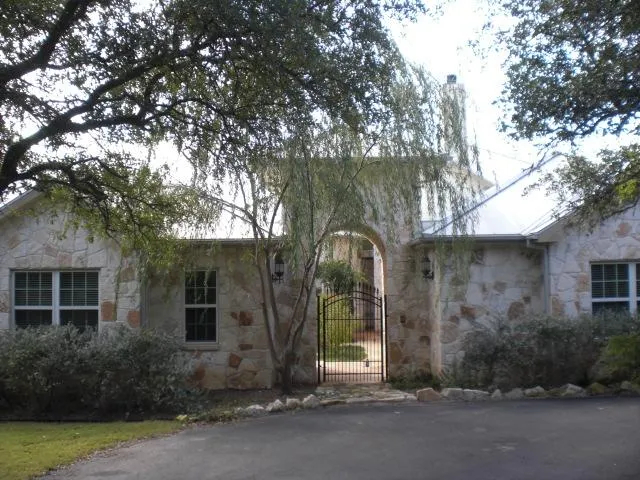 Welcome home to your Hill Country paradise on this custom home on 11.38 acres. 4776 square feet of living with courtyards, horse stalls, garden, fruit trees and so much more. 5 bedrooms, 4.5 baths, separate office, 2 living areas, eat in kitchen and formal dining! Attached living quarters with 2 entrances, 2 bedrooms, 2 baths, and kitchenette great for in laws or guests. Property is fully fenced, gated entry,and 2 pens cross fenced. Several balconies to watch the hill country wildlife. Bring your livestock!