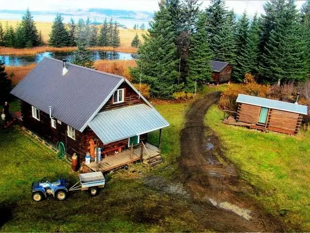 This is one of the best Silver Fishing areas in Alaska. I have personally caught Silver Salmon on a fly rod from the beach in front of this lodge. Bear viewing happens daily. This is a magical spot that is remote but not that far off the beaten path. The Main Lodge consists of the following buildings and inventory: Main Lodge is 18'x30' and features log construction, wood heat, kitchen, dining room, bathroom with sink, shower and flush toilet and a loft bedroom with king sized bed. Moose Cabin is 10'x12' and features log construction, bunk beds, portable toilet and propane heat. Bear Cabin is 12'x16' and features log construction, a king size bed, wood stove, portable toilet, counter bar and wardrobe closet. Fish Cabin is 12'x14' and features log construction, double bunk beds, wood stove, and portable toilet. Gear/Guest Cabin is 12'x20' and is unfinished. Guest/Workers Cabin is 16'x20' and features a wood stove, four double bunk beds, propane stove, refrigerator, storage area and gorgeous wood floors. Bath House features log construction and has a flush toilet and sink at one end, dressing room in the middle with a sauna/shower on the other end of the building. Metal Storage Shed is 12'x36'. It is used to store boats, lumber, crab pots, and lawn equipment. Picnic Shelter is 16'x20'. Root Cellar is located under ground by the picnic shelter. It is 8'x8' and allows the storage of fresh produce in the summer and can goods in the winter. Tool Shed is 12'x12' and contains numerous tools, three generators, battery bank for Trace inverter, and two freezers. Two 90 watt solar panels are mounted on the roof and a 403 Southwest 400 watt wind generator is located next to this building. Wood Shed with a metal roof is 8'x12' Metal Boat Storage Shed is 10'x20' Smoke House will smoke 10 Silver Salmon at a time. This property comes with a very extensive list of Equipment and Supplies. This property is ready to go!
