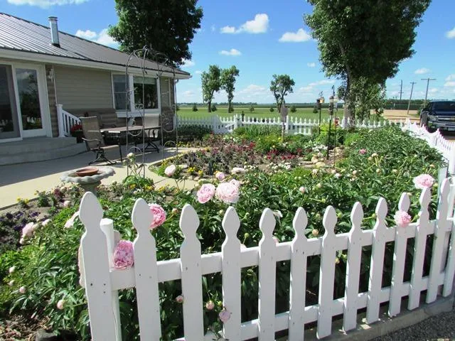 Located on a blacktop road, this immaculate acreage features a completely remodeled home, finished shop, mini orchard, flower gardens, raised vegetable gardens, underground sprinkler system, and much more! This well kept acreage consists of a contemporary remodeled 2,580 sf finished home with 5 bedrooms and 2.5 bathrooms. Remodeled within the last six years, the main floor offers an efficient kitchen and dining area with custom cabinets, patio door to the front patio, and a gas fire place connecting the living and dining area. With all new windows throughout, there is an abundance of natural light with 3 bay windows on the main floor. There are 3 bedrooms and 1 and 3/4 bathrooms (both with heated floors) on the main floor including the master suite. The master bedroom is inclusive of wardrobe closets, custom built-in storage cabinets, cedar closet, master bathroom with a heated floor and a walk-in tile shower, along with patio doors as an entry to the back deck and gardens. Dura Ceramic tile floors and hardwood are throughout the house except for carpet in the master bedroom. The lower level is finished with a cedar sauna, two bedrooms, laundry room, family room, and an abundance of custom storage cabinets and closets. The house has been updated with all new plumbing, furnace, central air, and a water heater. The attached 636sf garage is insulated and heated with a poly finished floor. The exterior of the house has been updated with steel siding and a steel roof.