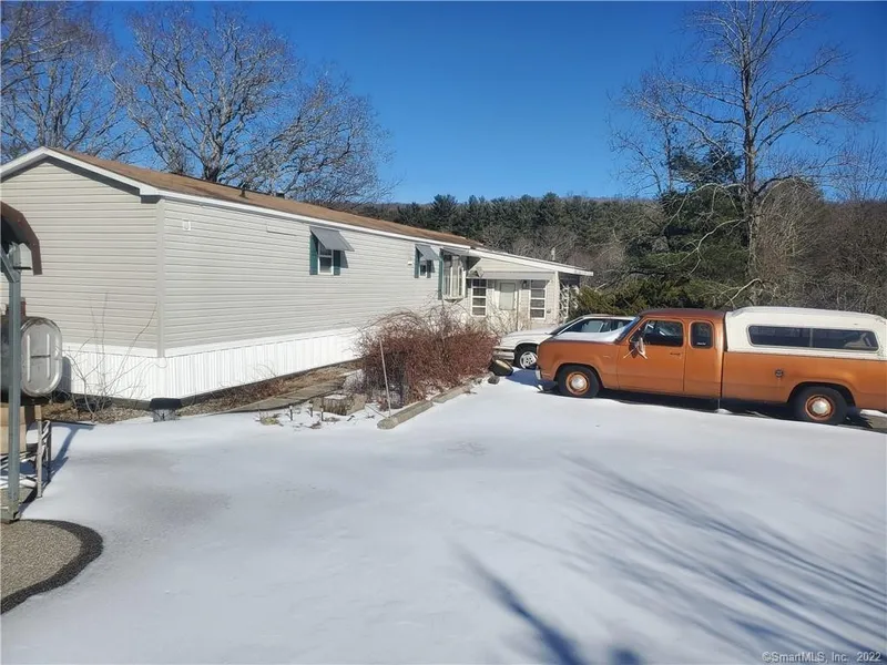Unique property with lots of potential, located on Route 198/Chaplin Road, with over 11.5 acres including woods and flat lands, bordered by the Natchaug River. Property is in a quiet, rural location surrounded by campgrounds and backs up to Natchaug State Forest, with trails, hiking, fishing, and other outdoor recreation. Property currently contains a manufactured home built in 1993 with a large enclosed porch, a carport, and a shed. Per family, there is a site separate from mobile home that has its own septic, well and electricity, previously used for large camp-outs. Per town permit records, roof was replaced in 2009. PROBATE SALE, being sold AS-IS/WHERE IS, including all personal property. *** Multiple Offers Received, Deadline was Tuesday at 7pm, Offers are being reviewed ***