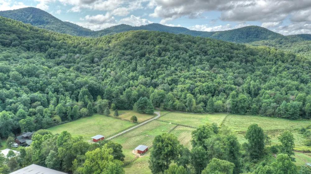 Crossfire Farms" produced Champions in this Impressive Equestrian Complex surrounded by (over 750') of Rushing Creek front in the Backdrop of the US National Forest. Thoughtfully Planned 5400 Sq Ft Horse Barn w/Concrete Flr (Rubber Matts thru-out). 21 STALLS w/Fresh Water & Lighting in Each, Heated & Cooled w/Huge Open Loft, Wash Out Area, Tack Rm, Feed Rm,Kitchen,Bath & Laundry.2 Drilled Wells (1-Barn & 1-Pastures) 150 X 100 COVERED Riding Arena w/Crush & Run Base.TREE HOUSE (32 X 24) w/Kitchenette, Heat/Air, Centerpiece Custom FIREPLACE, Screened"Back" Porch overlooking Pasture & Creek Plus 12 X 20"Front" Porch. 37 X 25 Hay Barn (Concrete Flr) will hold up to 1500 hay bales. 20 X 12 "Stall Shavings" Building (Concrete Flr). 20 X 10 Donkey Shed. Firewood Shed (5X6).TWO Hard-Wired Generators. 8' Metal Gates w/Stone Walls Entry & Completely Fenced in