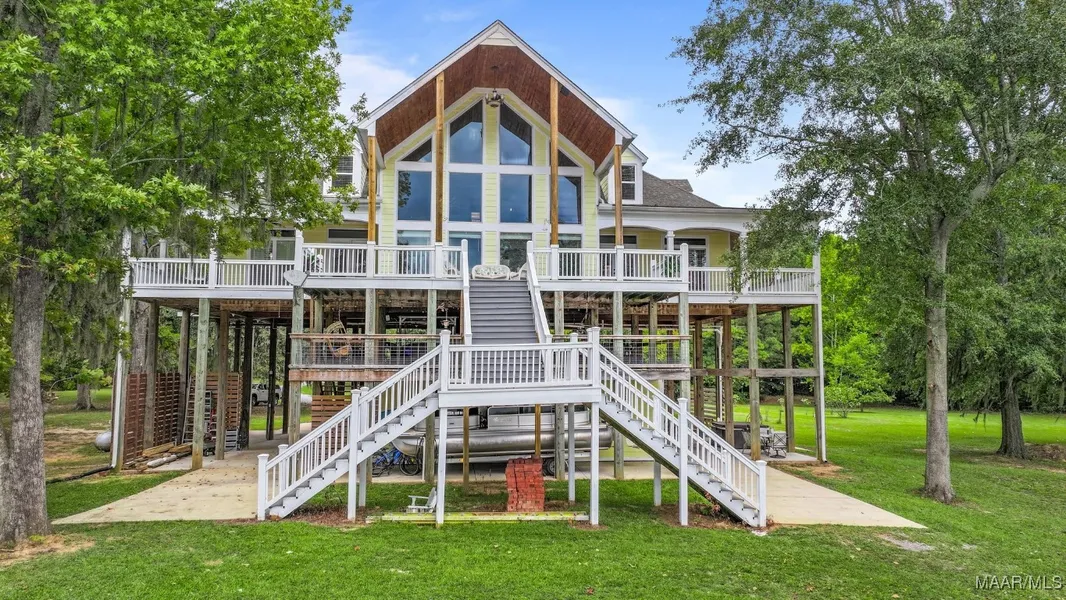 GORGEOUS RIVER FRONT PROPERTY WITH ACREAGE IN PRATTVILLE! Located in the sought-after GATED community of Grandview Harbor, one will find this stunning custom built river front home that is situated in a very private cul-de-sac. The home sits on 11.6 acres and has a long winding driveway that takes you up to the house. Surrounded with amazing water views on all three sides of the home and wooded acreage behind the home will enchant you with its charm. The home boasts 5 bedrooms, 5 bathrooms, a bonus room, vaulted ceilings, a full wrap around porch, a large living room with elegant A frame windows that overlook the river, a large stone fireplace in the living room, 2 additional electric fireplaces, an outdoor elevator, custom plantation shutters, 2 tankless water heaters, wood finished ceilings, stainless steel appliances including a double oven, granite counter tops, custom cabinetry in t...