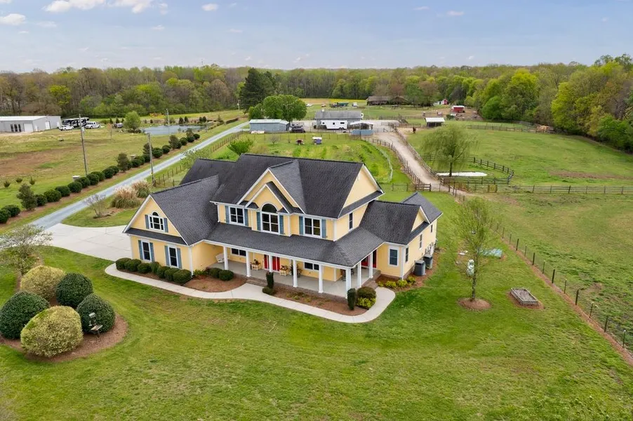 Horses or Hobbies? Easy access to I-485; 10 mins to Mint Hill, 20 mins to Waverly. Marty Griffin, custom-built farmhouse. Fenced pastures, run-in shelters, free range chicken yard w/coops, storage/workshop & 6-stall barn w/auto waterers, mats, & fans.Hay loft, concrete center aisle, tack rm, lounge & auto fly mist. Lighted 90 x 170 arena. Orchard/garden. New roof, garage w/drop zone & full bath. Sealed crawl space, tankless H2O heater, attic fan. HW floors in living areas, slate floor in foyer & laundry, solid wood trim & doors, Pella windows, large laundry rm. Chef's kitchen w/hickory cabinets, granite counters, pantry & SS appliances, includes double oven & warming drawer. Great rm w/rock FP. Primary suite w/tray ceiling & access to porches. Bath w/dual vanity, jetted tub, & walk-in closet. 2nd level offers 3 bedrooms & full bath, loft area & separate bonus rm, walk-in attic. Indian T...