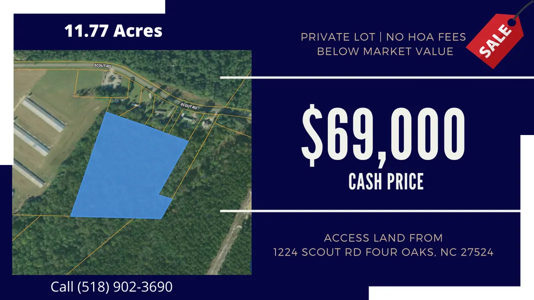 A RARE OPPORTUNITY to own NEARLY 12 ACRES in Johnston County for UNDER $100,000! Conveniently located between I-95 and I-40, this 11.7-acre property makes for an easy commute to either Raleigh or Fayetteville. Nestled in the town of Four Oaks, this property offers incredible scenic surroundings that are only a short drive away from notable schools, great restaurants, wildlife attractions, and an outlet mall. The acreage has extraordinary potential for either commercial or residential development, perhaps even your own custom dream home! With nearly 12 acres listed at $69,000, the development possibilities for this property are endless: there are no covenants, zoning restrictions, or HOAs!