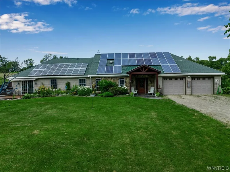 Welcome to this remarkable 3-bed, 2-full bath earth sheltered home nestled on just under 12 pristine acres. Brimming with sustainable features, this home is a testament to eco-conscious living. With geothermal, solar, and wind energy systems, this residence exemplifies efficiency at its finest. Step inside and discover an open living room, dining room, loft family room, and kitchen adorned with sleek granite counters and an inviting eating island. Main bedroom boasts a spacious bathroom with shower and a soak-in tub, offering a serene retreat after a long day. Step out onto the patio, where a built-in fire ring awaits, providing the perfect setting for cozy evenings overlooking the gazebo and pond. Additionally, this remarkable property includes a guest cottage featuring a composting toilet and shower, ensuring your visitors' comfort while further embracing sustainable living. Don't miss this opportunity to experience a harmonious blend of modern comfort, natural beauty, and self-sufficiency. Embrace a lifestyle that truly cares for the Earth.