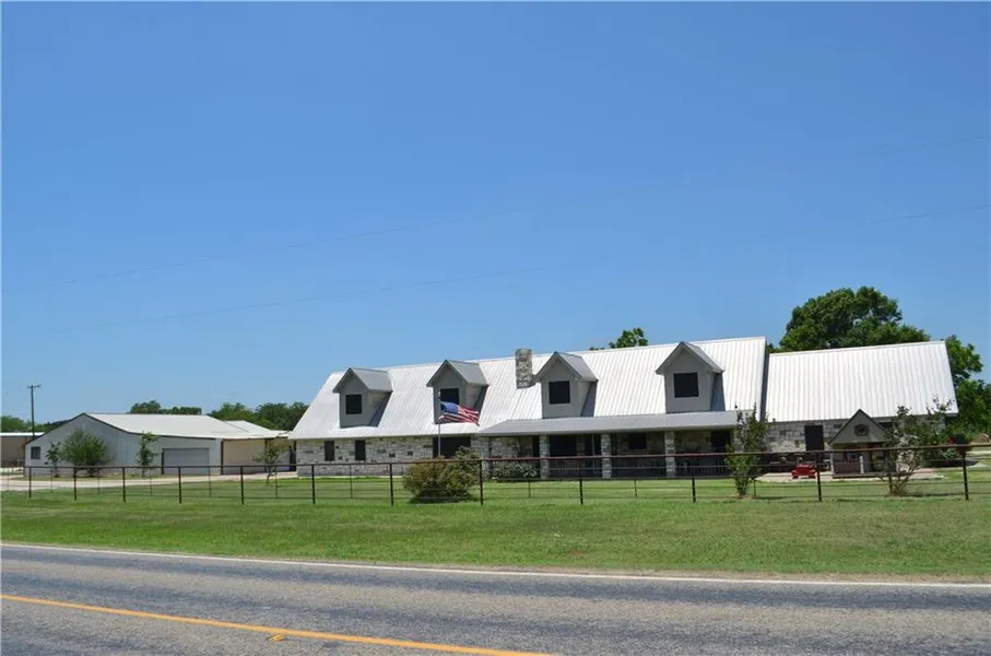 Big family fun! Unique floor plan has separate kid suites upstairs. Multiple living areas, homework stations and home office. Secluded downstairs Master suite. Great storage, huge utility space! Lots of road frontage, huge workshop, separate entrance for business or hobbies. Large lovely pond with fish, meadow for animals and nice hay production. Scattered large trees. Spray foam. Metal roof. Updated kitchen and baths. Large Commercial style Stainless Refrigerator and Freezer. 2 water heaters 1-80 gallons, 2 water meters. 3 HVAC, 2 car garage with mudroom bath. Tree shaded backyard, patio. Long covered front porch. Extra parking includes oversized carport for trailer or boats. May also have SSISD ability.