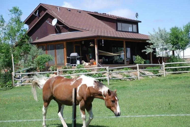 Custom-designed and custom-built home with numerous great features! There are wonderful views, plenty of windows, jetted tub, large dual shower and back-up water system. The yard is landscaped, the horse pastures are cross-fenced and irrigated, and there is a pond for stock. The shop is finished, insulated, and has floor heat. Guest house with one bed and one bath.