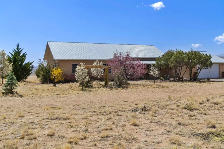 Soothe your soul in this beautiful northern New Mexico destination and make this lovely property your home. The home is territorial style home & situated on 11 +- acres & is set up for your horses and four legged friends. The kitchen, dining and living area floor plan is open allowing plenty of space for entertaining or family gatherings. Three large bedrooms, two baths (one in suite), the laundry room, pantry and storage space are all on the main floor. The second floor space is currently used as a 4th bedroom and office combined. Additional partially finished space on the second floor includes a very large walk in closet , attic space and appx. 540 sq feet that could be converted to another bedroom, game room or studio. Double car garage. The barn is solid wood with 3 covered stalls with runs, automatic waterers, a large tack room & hay storage. If you are interested in dressage, there...