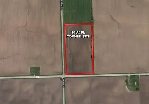This relatively flat 11 acre parcel located southeast of Joliet at the corner of Manhattan Road and Rowell Road west of Manhattan, IL and northeast of Elwood, IL. The property is 5.5 miles south of the Union Pacific Global IV Warehousing and Distribution center, 5 miles east of Centerpoint Intermodal in Elwood plus the recently approved North Point Industrial Park is adjacent. This intersection has approximately 4200 cars pass by daily.