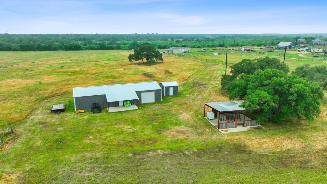 Live the Texas Country Lifestyle on this 11 Acre Ranchette in Luling, TX! This beautiful land is cleared and ready for you to make it your own. Featuring a 25x60 metal building with covered front/back porches, RV Hookup, outdoor bar/entertainment space, water well with insulated pump house, AND electricity already on site. The barn has lights and provides the perfect storage space for tools, equipment, and toys. You can also easily convert into a barndominium home!! Bring your cows, horses, or other animals and enjoy having a fully fenced-in property to start with on day one. Double wide mobile homes are allowed per light deed restrictions. One home per acre. A septic system will still be needed. No flood plain!! This is the perfect opportunity to start your own personal farm or retreat. Schedule a tour with one of our land agents today!