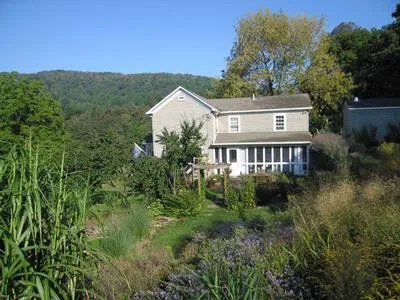 Near Shenandoah National park, this is an extraordinary self-sustaining mountain retreat on a south-facing slope 30 minutes north of Charlottesville. This charming 1910 farmhouse has been renovated and offers lovely space. The property enjoys beautiful, hardy and native landscaping and fertile vegetable gardens, orchards and vineyards. All is complemented by a walking bridge over a spring-fed stream, deep pasture and forest, hand-built arbors, extensive rock walls, barns and sheds. A separate studio has been constructed across the lawn for the artist - wired for Internet and TV. Mountain views are beautiful through four seasons. A five minute walk to Shenandoah National Park.