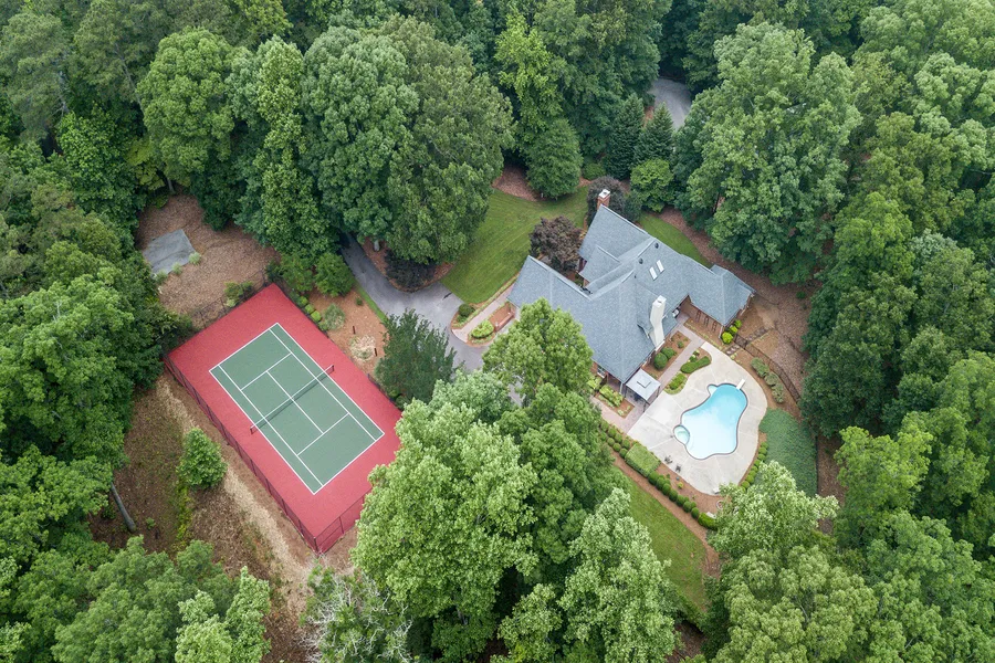 Picturesque views and ultimate privacy await at 1231 Pates Creek Road. This Henry County gem offers 9+/- acres with a gorgeous all-brick home, private tennis courts, in-ground pool with a hot tub, and access to a private lake. Inside, you'll find stunning hardwood floors throughout the home. The kitchen boasts a double oven, gas cooktop, large kitchen island, and magnificent granite countertops. Each and every room in this house offers ample space and soaring ceilings. There's even a custom three-car garage with a workshop space and a separate apartment on top, complete with a kitchen. Experience the luxury and amenities in absolute privacy on this incredible property.