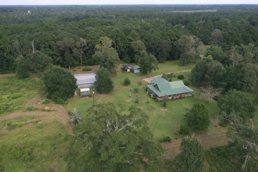 Charming 3 bedroom, 1 bath log home with 2-car attached carport set on 11 cleared acres with a pond, partial fencing, barn, concrete workshop, multiple outbuildings, greenhouse, and chicken setup perfect for your homestead dreams! Enjoy wraparound porches made for sunrises and sunsets, plus an almost-finished storage room that could easily become an extra bath. Inside, the open-concept design shines with cathedral ceilings, a woodburning stove, hardwood floors, and rustic wood walls and ceilings. The kitchen is a blank slate, ready for your personal touch (previously outfitted with antique furniture as cabinetry). Walk-in attic space adds even more storage potential. Conveniently located on the corner of FM 252 and CR 480, halfway between Jasper and Kirbyville, with paved road access. This unique property offers warmth, character, and endless possibilities!