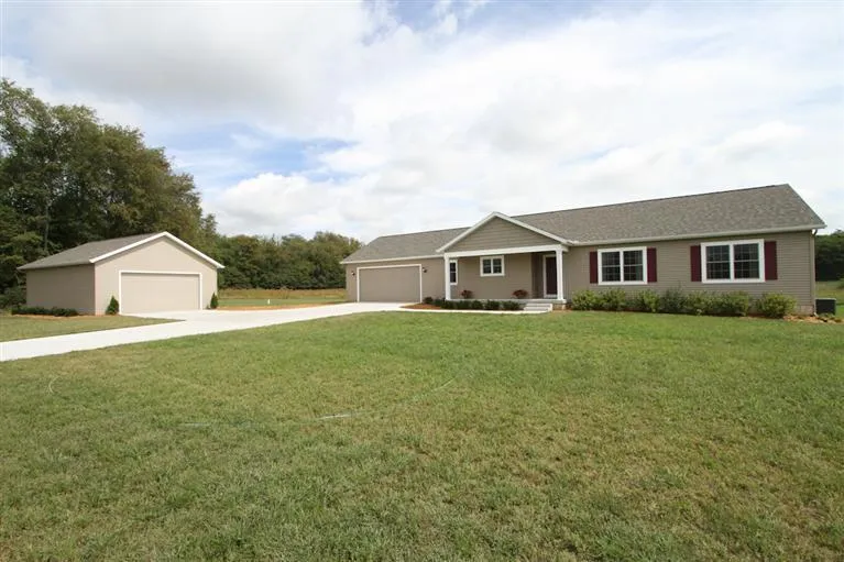 This is the rare property that you have been looking floor. With 420 feet of frontage, this high end construction 1 year old ranch has over 3,000 sq ft of living space. 11+ acres with beautiful woods. Must get inside to appreciate this spacious 3 bedroom, 3 full bath home. Open floor plan, vaulted ceilings & rich hardwood floors throughout. Large great room flows into DR with slider to huge deck with panoramic views of woods and rolling hills. Gourmet kitchen with custom glazed maple cabinets, gleaming quartz, & SS appliances. Perfect for entertaining. Expansive master suite and bath with huge tiled shower, two-person tub and elegant porcelain tile. All baths feature custom glazed maple cabinets with granite vanity tops. Daylight lower level is fully finished with spacious family room , full bath and additional exercise room with walk-in closet. Convenient main floor laundry. Zoned heat/cooling. Extra deep 2 car garage plus a pole barn. A gorgeous home!