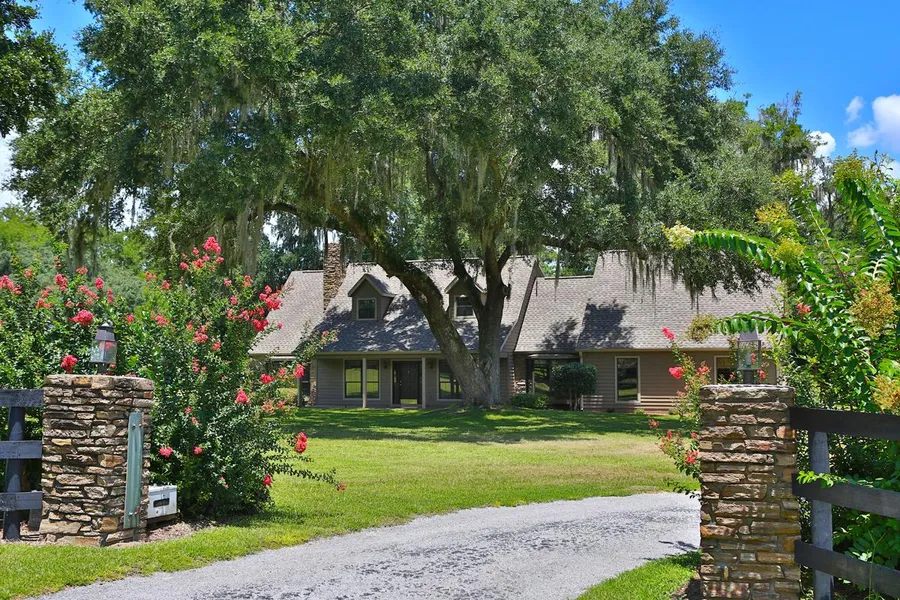 11 + Acres in SE Ocala with no deed restrictions! As you enter through the gated entrance your eyes will be drawn to the beautiful Granddaddy Oaks as you drive up the winding drive, to arrive at this 3 bedroom / 2 bath home. The home features family room with stone wood burning/propane fireplace, kitchen with breakfast nook overlooking the farm, and formal dining room with large bay window. Master suite is located on the main floor with walk in closet and expansive bath with dual sinks. The second floor includes Jack and Jill bedrooms with two bedrooms. Screen enclosed porch is perfect for relaxing in the evening and enjoying the views of the farm. For the car enthusiast there is an attached 2-car garage plus a detached 3-car garage which 1 bay currently finished off with A/C and full bath. There is also a 48' x 50' metal building which has many possibilities. Gated entrance with stone p...