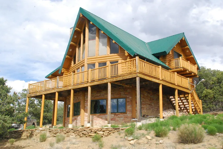 This majestic home is custom built to specs from 9"Montana logs, huge windows in Living and Dining combo room rise 25'up and above the recreation room in the basement. Radiant floor heat throughout basement and main floor, additional heat is provided by a built-in wood burning fireplace, Jan instant hot water heater, granite counters in master bath (his & hers), marble tile in shower & kitchen counter, MBR has direct access to wrap-around porch (3 sides, plus 2 smaller porches outside of upstairs bedrooms with awesome views. Upstairs bath is a full bath with a claw foot tub, upstairs bedroom sleeps 4, plus loft can be used as an additional bedroom for 2. Excellent well is 300' deep and pumps 18gpm. Metal roof & gutters. 1-4 additional lots available for sale to make this a nice equestrian ranch. Annual property tax: $ 1,195.