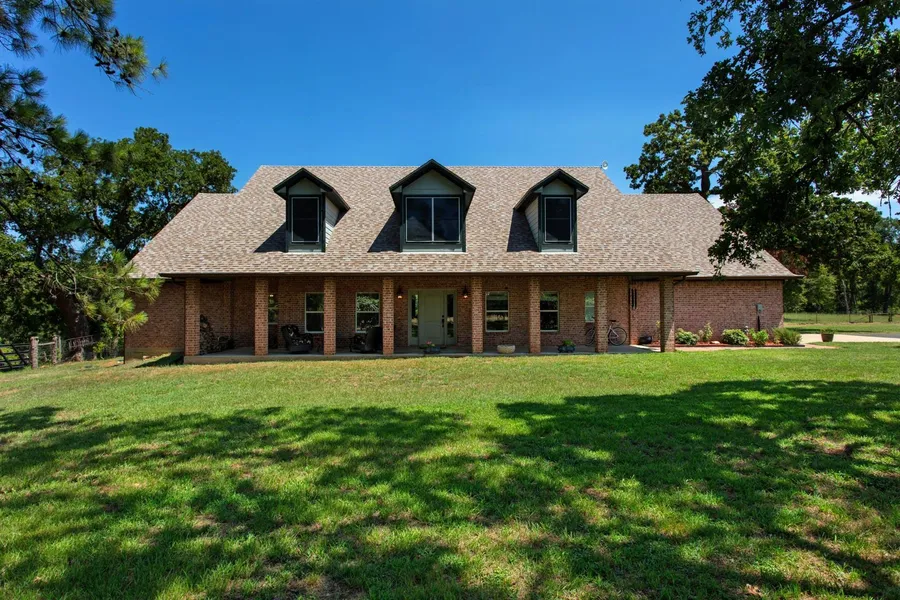 Just 20 minutes from Bryan, TX, this rare 110-acre estate offers privacy, elegant comfort, a year-round, spring-fed stream, perimeter and cross fenced, abundant wildlife, wooded and open areas. With an extensive 2020 designer-inspired remodel, the open living area, expanded kitchen and private master suite showcase an unmatched view. The kitchen features quartzite counters, custom cabinetry, a Wolf gas oven/range and large butlers pantry. Upstairs a large bedroom provides luxurious guest space or a second master suite, along with recreation space. The home is wired with high-speed internet for TV streaming, gaming, and business and with in-ceiling music speakers. 12 reinforced concrete exterior walls, spray foam insulation and large shaded porches create energy efficiency, backed by a whole-home generator. There are two water wells, and municipal water is available. The home is well centered with paved drive and two custom automatic gates. 35 acres of improved Bermuda pasture are currently in hay production.