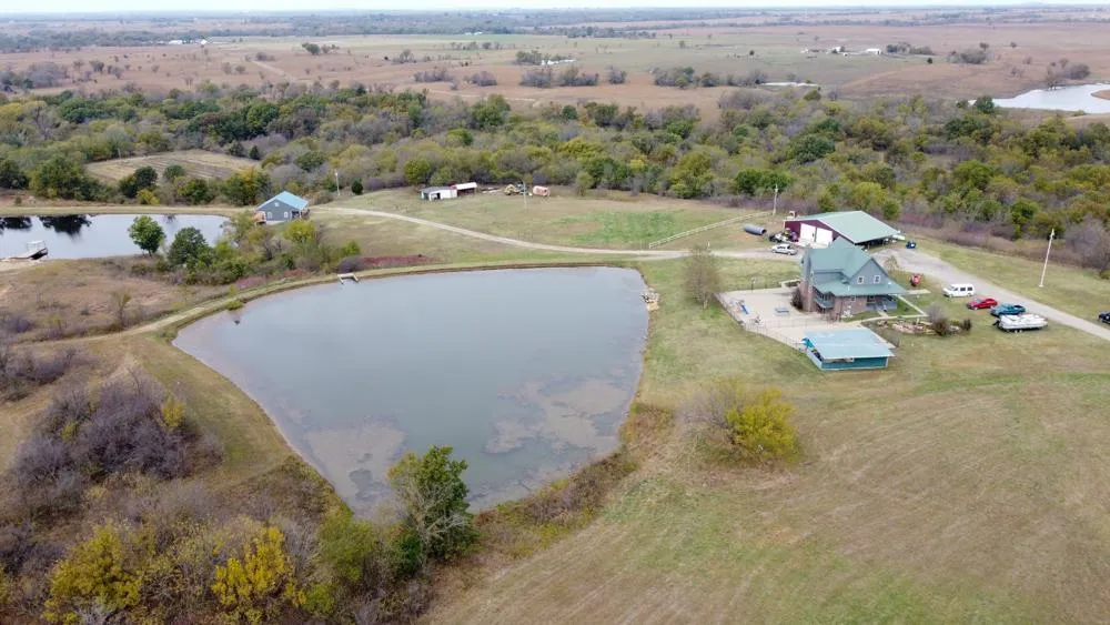 Located in Nowata County is this incredible 110 +/- acre farm offering picturesque views of western Nowata County and eastern Washington County. Perched high atop the rolling hills of Nowata County, you will find the primary residence. The beautifully constructed split-level home overlooks a 1.5-acre pond and is comprised of 4,600 square feet, 4 bedrooms, 3 bathrooms with a wrap-around porch, metal roof, and a 1,600 square foot full walk-out basement. Spend your evenings or weekends swimming in the in-ground pool or fishing and kayaking in the 1.5 acre stocked pond, which is one of five ponds located throughout the property.