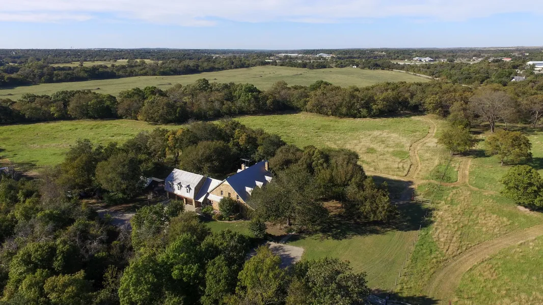 This 18-acre estate sits on Jenkins Road, one of the most coveted streets in the Aledo School District. The house is a comfortable 5216 square feet with the master bedroom down and 3 bedrooms upstairs. A formal living with a fireplace and a formal dining, both with mesquite floors, make it a wonderful place to entertain for special occasions. The kitchen boasts a beautiful mesquite wood-topped island, honed granite counters, lots of cabinet storage and slate floors. It is open to the casual living area with another wood burning fireplace and great views of the pool and pastures. A large second living room upstairs provides a fantastic space for family entertainment. The house has a saltwater pool within a fenced-in backyard. A small pool house with a kitchenette and bathroom overlooks the pool. There is also a Sweetwater barn with 6 stalls, a small office, kitchen, living quarters, and tack and feed rooms. The property backs up to a beautiful tree-lined creek and has two fenced and cross-fenced pastures. The front gate is only 18 miles from downtown Fort Worth, making it one of the most convenient locations in Aledo.