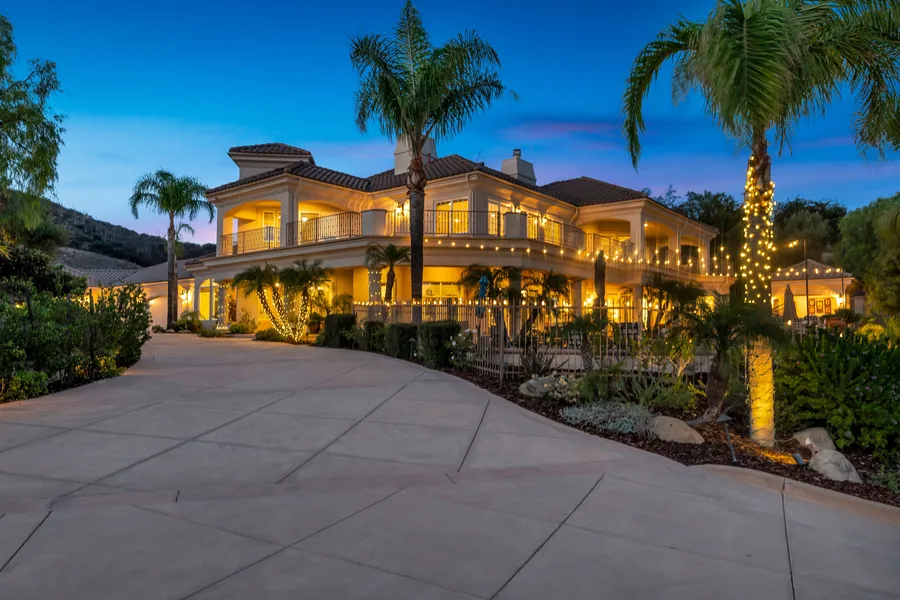 Introducing a Modern Mediterranean estate that redefines luxury living — a serene, gated oasis offering complete privacy, peace, and sophistication. Perfectly positioned in one of the area's most desirable enclaves, this exceptional property is surrounded by rolling hills, scenic trails, and breathtaking natural beauty. It blends timeless Mediterranean architecture with the best of modern California design. A long private driveway leads through manicured grounds to a residence designed for seamless indoor-outdoor living. Expansive spaces open to covered patios and balconies, creating a natural flow between elegant interiors and the resort-style exterior. At the heart of the outdoor experience is a spectacular infinity pool overlooking panoramic mountain and treetop views. The pool area is complimented by a fully equipped outdoor bar/kitchen with bar seating, refrigerator, bathroom, and g...