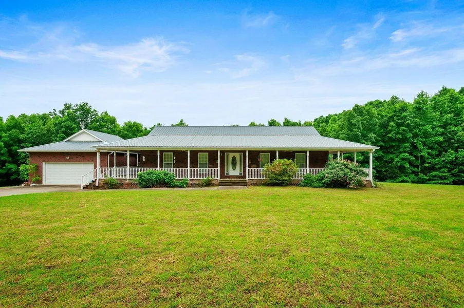 Gorgeous home on 111 acres in the rolling hills of Middle Tennessee just under 1 hour from Nashville. Property features 3 bedroom, 2 bathroom all-brick, one level home with great wraparound porch and 2 car detached garage. Property features an open concept floor plan with a living room/kitchen/dining room combo, perfect for a family or those looking to move out of the city to enjoy country life! Property has road frontage on 2 county roads.