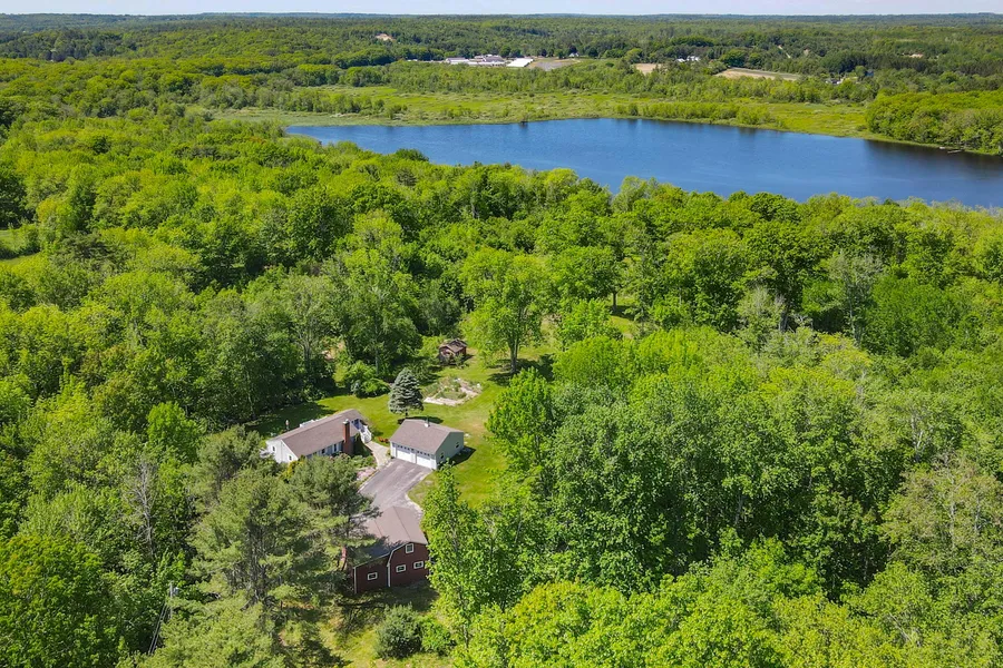Escape to your own private haven on 24 sprawling acres of pristine countryside, boasting an impressive 600 feet of tranquil waterfront along White Oak Pond. This well-maintained ranch-style residence offers an idyllic blend of comfort, simplicity, and natural beauty, truly a rare opportunity. The main level features one floor living with a bedroom, full bathroom, kitchen and living room on the entry level. Warm wood flooring carries through the living room and kitchen spaces. A gas fireplace in the living room offers a cozy space to relax or entertain guests. The updated kitchen offers granite countertops and a beautiful built-in dining table, perfect for enjoying casual meals or hosting dinner parties. Downstairs, a finished basement provides additional living or sleeping space, ideal for a home office, additional bedroom or rec room. Convenient stackable laundry, new propane furnace, on demand whole house generator and hybrid hot water heater have been added. Walk out the sliding glass door to the lower patio area, offering an outdoor shower with hot and cold water and a hot tub! Outside, the property is a nature lover's paradise! Immerse yourself in the beauty of the meticulously landscaped flower gardens, savor the bounty of the fruit trees and berry garden, or simply soak in the serenity of the surroundings from the expansive composite deck overlooking the pond. A detached gambrel barn with a carport and second-story bonus space offers endless possibilities for storage, additional guest space or a workshop. A mowed path leads to the water's edge, gradual entry into the pond great for swimming or launching your kayak or paddleboard. A great fishing spot too!! Don't miss your chance to experience the unparalleled beauty and serenity of this exceptional home on White Oak Pond. Offers being accepted until Sunday June 9th at 5PM Decision by Monday June 10th 5PM.