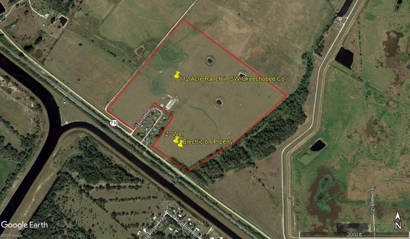 112 acre Highly Improved Ranch. Excellent Location in S E Okeechobee County on SR 710 with great highway exposure for numerous businesses. Great for commuters to the coast and easy access to town, only 3.5 miles to SR 70 into Okeechobee. Frontage on SR 710 and rock road on west side of property. Ranch is currently used as a cow / calf beef cattle operation, but designed and set up to be used for backgrounding, developing and shipping heifers. The perimeter fencing includes woven turnpike wire across the entire front of property. Cross fences divide property into four pastures with two additional traps around cow pens. All pastures have natural ground water, plus two of the pastures and both traps are supplied fresh water in concrete troughs from a two inch well. Uses are numerous, small purebred cattle operation, equestrian operation, above ground or in ground nursery or Agri-tourism property and plenty of room for home site. Land is located close to Lake Okeechobee which helps this property to be warm and lessen chances of a freeze. This highly improved property is well fenced, has good drainage, excellent soils and high quality grasses. Currently zoned AG with land use of 1 unit to 5 acre available for the Buyer with future thoughts. Don't miss out on this rare opportunity to own this ranch parcel in S E Okeechobee with so many possibilities in the most sought after area in the county. Owned by Broker.