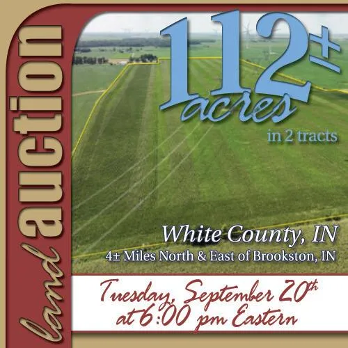 From Brookston, IN, at the intersection of SR 18 & SR 43, take SR 43 3 miles north to CR 700S, then take 700S 1-1/2 miles east to CR 150E, take 150E 1/2 mile south to the property on the east side of CR 150E.