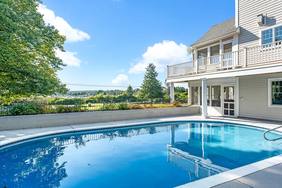 Get ready for making summer memories in this lovely, totally renovated (in 2013) house with truly stunning ocean and sunset views! The total renovation includes a beautiful chef's kitchen and all 4.5 baths with a sunny and bright open concept living space to entertain in great style! This property is a true summer playground of enjoyment with a newly renovated in ground pool, putting green and a bocce court! The breathtaking ocean vistas set the stage for mesmerizing sunsets year-round! Watch boats glide in and out of the Cove, feel the soft ocean breezes, and lose yourself in the post-sunset glow that lingers on the horizon. This 4,700-square-foot home features living, dining, and kitchen areas as well as the main bedroom all with magnificent water views. Two office nooks offer privacy while still connecting to the main living spaces. A hard-wired sound system runs throughout the house, ready for the new owner to add their personal playlist. The spacious ensuite main bedroom features a walk-in closet and a well-appointed bath. Upstairs, the landing lined with bookshelves creates a spacious yet cozy reading nook with views. Two additional bedrooms, two baths plus an additional sleeping room designed as a den, and ample attic storage complete the upper level. The above grade lower level offers a family room, a full bath and a fabulous work room for artists or woodworking making this home perfect for entertaining friends and family regardless of the season!